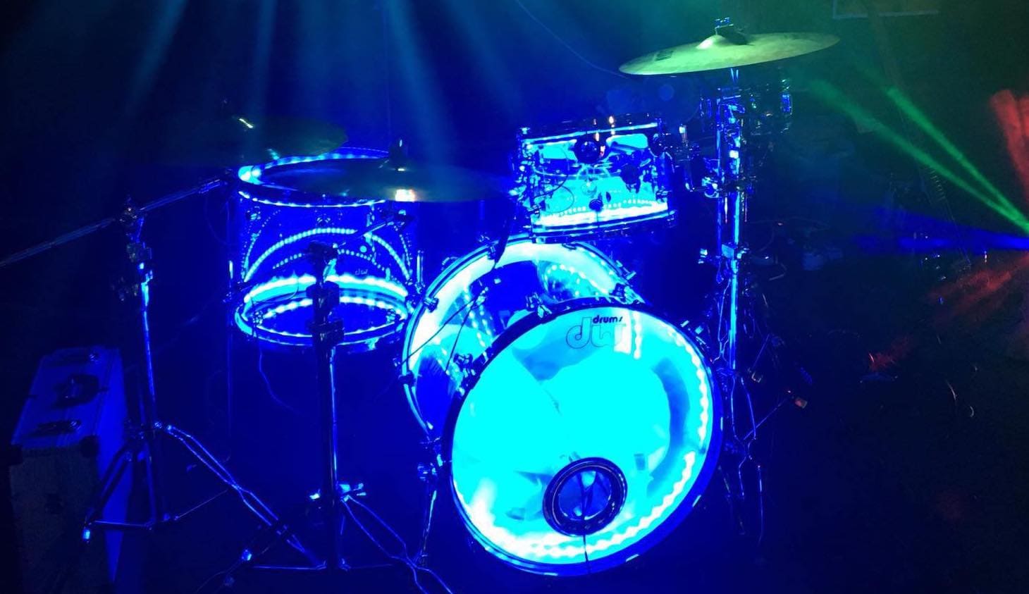 DW Design Series Acrylic Kit on stage with drum lights.